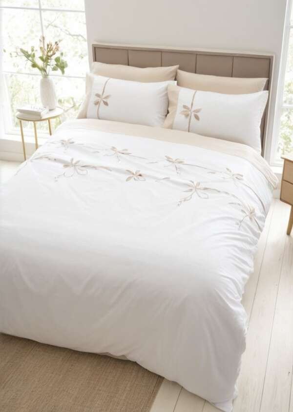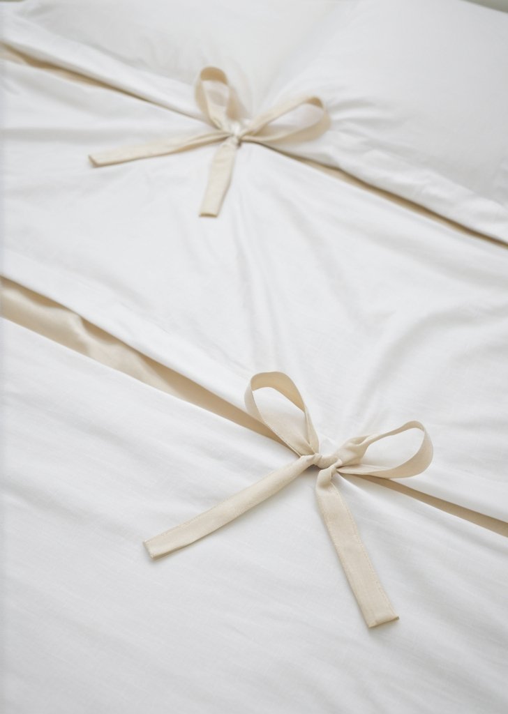 Komplet poszewek na kołdrą z kokardką, naturalny