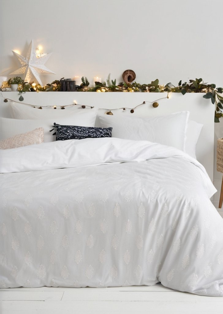 Dodaj wyrafinowania swojemu świątecznemu wystrojowi dziąki zestawowi kołder z pikowanym drzewkiem. Wykonane w 100% z bawełny i ozdobione pikowaniem w kształcie mini drzewka. Nasza pikowana pościel z drzewa doda Twojej sypialni przytulnego, teksturowanego wyglądu tej zimy. Dziąki wygodnej, oddychającej bawełnianej podszewce z perkalu, która zapewnia lepszy sen, ta pościel jest niezbądna w eleganckiej świątecznej sypialni.