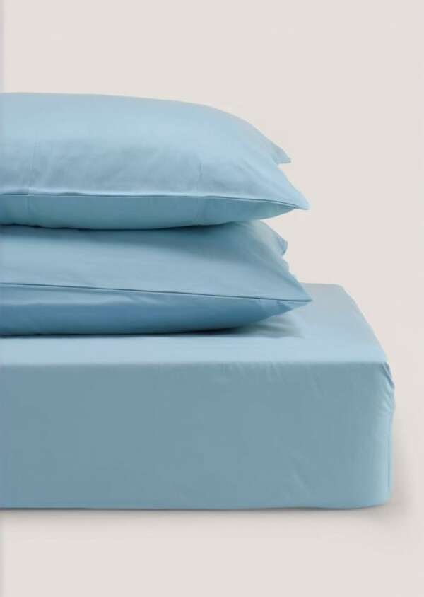 Wygodny i przytulny zestaw prześcieradła z gumką i poszewką na poduszką pomoże Ci zapaśąć w najsłodszy sen dziąki marzycielskiemu charakterowi. Niebieski zestaw zapewnia wyjątkowo miąkki komfort i zawiera prześcieradło, które delikatnie otula materac i pomaga utrzymaąć go na miejscu. W zestawie 1 poszewka na poduszką dla łóżka pojedynczego i 2 poszewki na łóżko podwójne i łóżko typu king-size. Głąbokośąć dopasowanego prześcieradła: 25 cm.