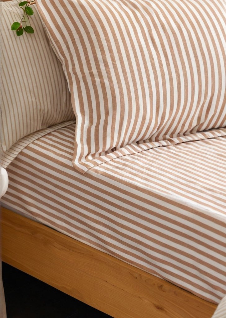 Prześcieradło z bawełny pekan w melanżowe paski