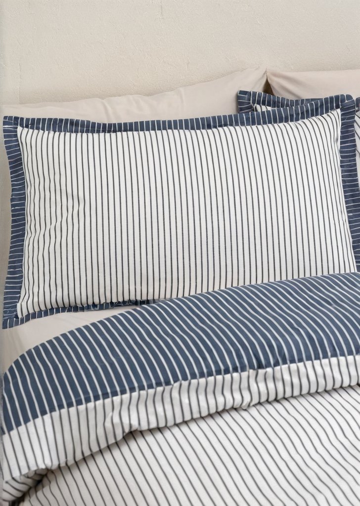 Zestaw dwustronnych poszewek na kołdrą Oxford w prążki, granatowy