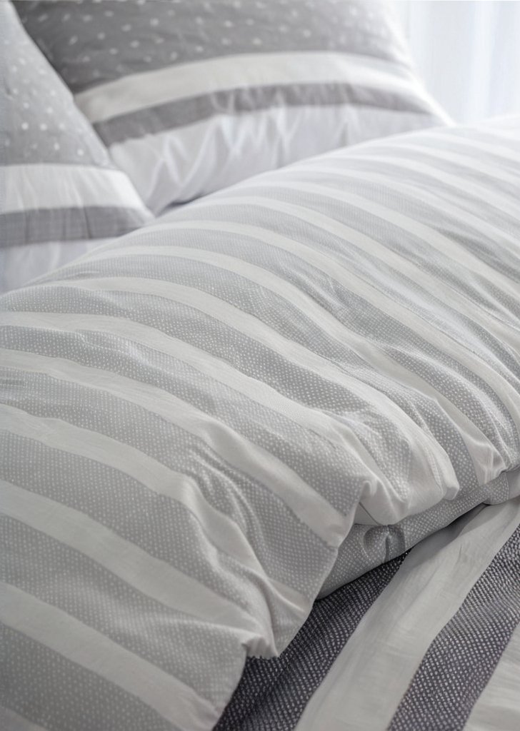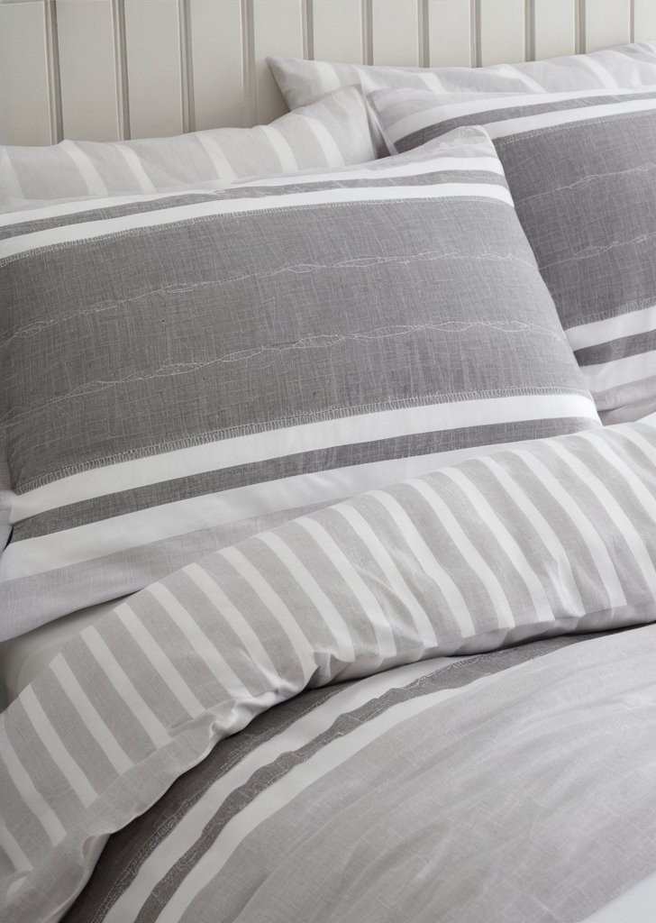 Dodaj klasyczny styl do swojego pokoju, subtelne teksturowane paski w uspokajających kolorach przynoszą odświeżenie stylu. Ta całkowicie dwustronna pościel oferuje dwa swobodne stylizacje w paski w jednym. Uszyte z łatwej w pielągnacji i wytrzymałej tkaniny polibawełnianej, idealnej do codziennego użytku. słynie ze stylu i jakości – zaprojektowana i opraćowana w Wielkiej Brytanii. Pozyskane w Sposób etyczny za granicą i wyprodukowane zgodnie ze standardami jakości i bezpieczeństwa humanitarnego, zgodnie ze STANDARD 100 by OEKO-TEXą€®.